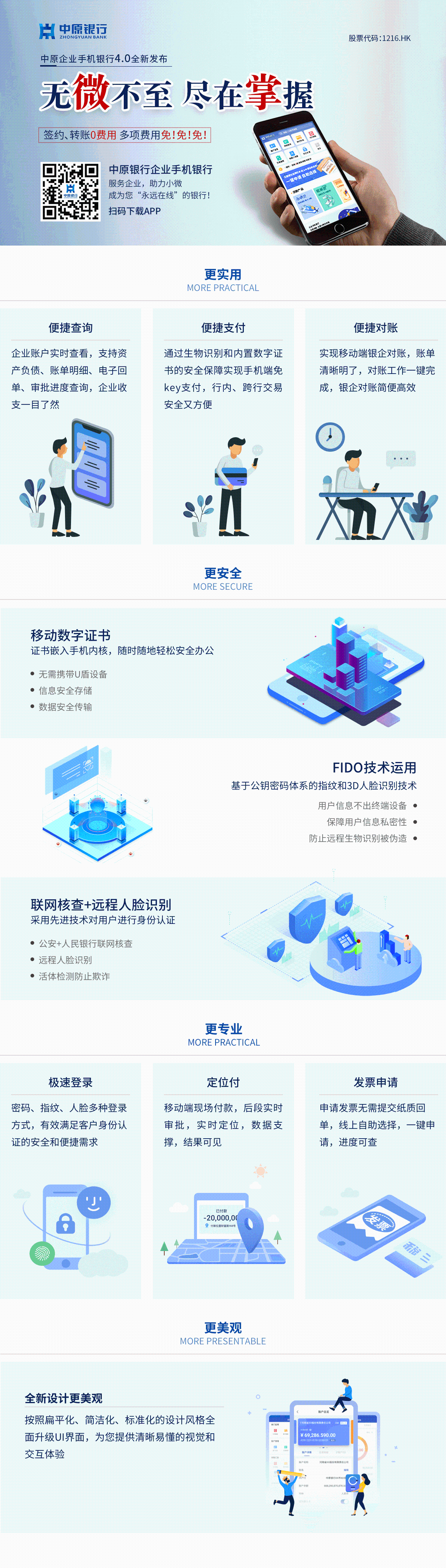 中原銀行企業(yè)手機(jī)銀行4.0面向企業(yè)客戶提供全方位、多樣化的移動(dòng)端金融服務(wù)。企業(yè)客戶可通過APP在線升級或應(yīng)用商店下載獲取。